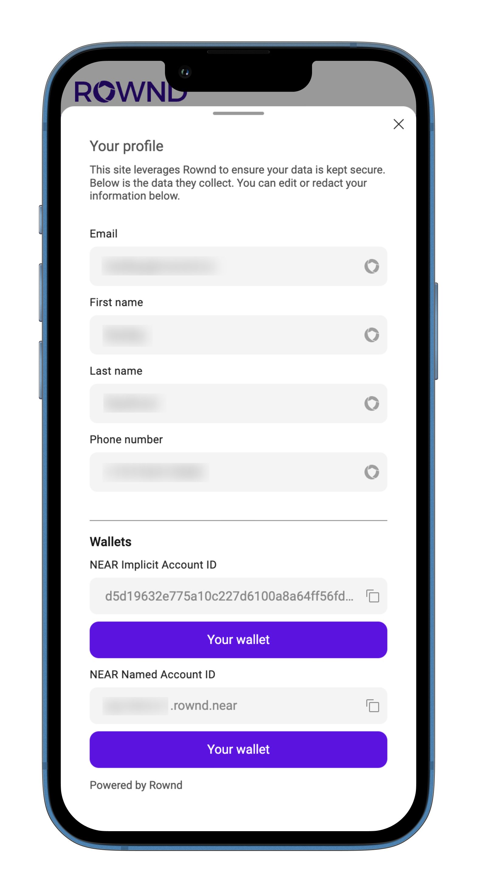 Users can easily attach a NEAR wallet to their Rownd account, making it simple to manage their blockchain assets alongside their other authentication methods.- Mobile